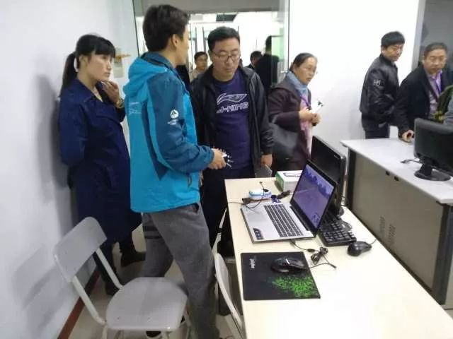 由于来参观的代表比较多,为了让他们更深入的了解我们的无人机学院,由我们的其他老师带着部分领导去参观我们的培训教室和器材室,当时教室正好有一批学员正在上室内模拟飞行课程,很多代表感到很新奇,上前和我们的上课老师以及学员交流沟通,有些代表甚至亲自体验了一把无人机模拟飞行。老师们也帮助代表们普及了一些无人机方面的知识,包括AOPA,空域等概念。
