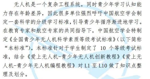 全国青少年无人机及模拟飞行科学素质等级考试标准的通知